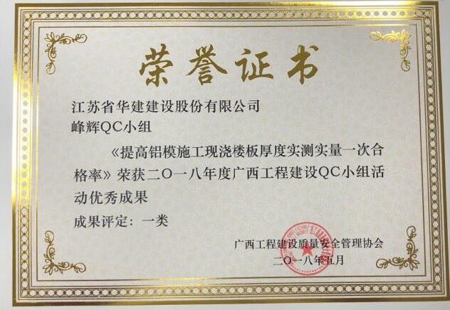 北京公司2項QC成果獲得省級表彰 時間:2018-06-02 2569 日前,北京公司有2項成果獲得省級表彰。蘋果QC小組“提高天棚輻射管道安裝一次合格率”榮獲天津市2018年度建設系統QC成果三等獎,峰輝QC小組“提高鋁模施工現澆樓板厚度實測實量一次合格率”榮獲2018年度廣西工程建設QC小組活動優秀成果一類成果。