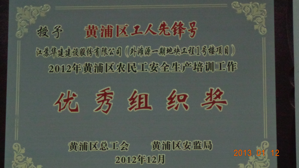 上海洛克外灘源一期被授予“黃浦區(qū)工人先鋒號” 時間:2013-01-12 6472 日前,在上海黃浦區(qū)總工會、黃浦區(qū)安監(jiān)局聯(lián)合組織的“工人先鋒號”評比中,由我公司組建的上海洛克外舉灘源一期被授予黃浦區(qū)工人先鋒號,同時還被授予2012黃浦區(qū)農(nóng)民工安全生產(chǎn)培訓工作優(yōu)秀組織獎,周群利同志被評為2012年黃浦區(qū)農(nóng)民工安全生產(chǎn)培訓工作先進個人。