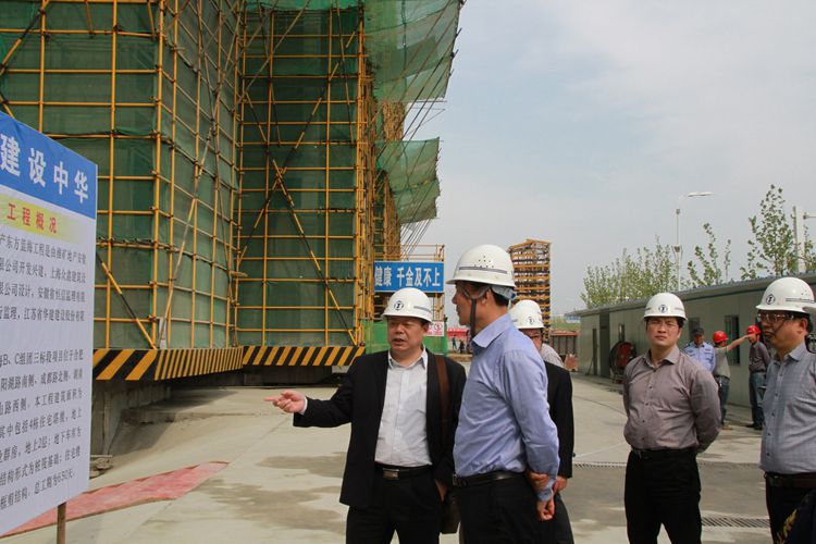 410下午,揚州市副市長聞道才在揚州市建設局成自勇副局長、唐朝文處長和廣陵區、邗江區、江都區副區長等的陪同下,赴我司合肥東方藍海BC組團三標段項目參觀考察。公司副總經理陸俊、公司副總經理、惠州區域公司總經理華恒榮向來訪領導簡要介紹了江蘇華建在安徽市場的發展戰略及東方藍海BC組團三標段項目的施工情況。