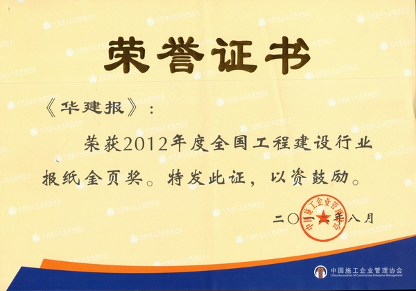 8月9日,中施企協(xié)發(fā)布《關(guān)于表彰2012年度全國工程建設(shè)行業(yè)“金頁”報刊和“銀頁”報刊的決定》,公司主辦的《華建報》連續(xù)第三年被評為全國工程建設(shè)行業(yè) “金頁”報刊。《華建報》創(chuàng)刊五年來,積極發(fā)揮窗口作用、平臺作用,以反映公司在技術(shù)創(chuàng)新、管理創(chuàng)新、體制創(chuàng)新和市場開拓等方面的新動態(tài)、新經(jīng)驗(yàn)和新成果為主要內(nèi)容,在宣傳企業(yè)形象、凝聚員工精神、塑造企業(yè)文化和促進(jìn)行業(yè)交流等方面起到了積極顯著作用,受到社會各界好評。
