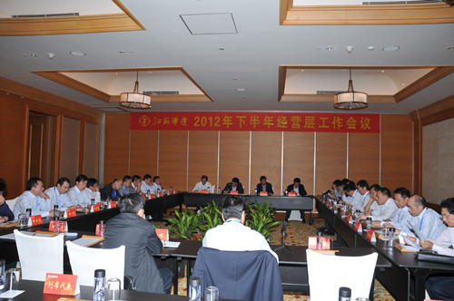 112下午,公司在惠州召開2012年下半年經營層工作會議。會上,各大區域公司、直屬分支機構負責人匯報了今年以來的生產經營工作情況,副總經理、總工程師程杰簡要介紹了總部今年以來的工作情況,副董事長、總經理宗有農主持會議并介紹了全公司今年生產經營工作的主要成效,并對近期工作進行了部署。公司董事長陸金龍在會上強調,今年的經營業績與往年相比有了大幅提高,成績來之不易,今后要在隊伍、財務、業務三大建設方面加大力度,重點在隊伍的收編和建設、分配機制的改革和優化、產業鏈的發展方面有新的建樹,推動公司在轉型升級、跨越發展的快車道上快速前進。