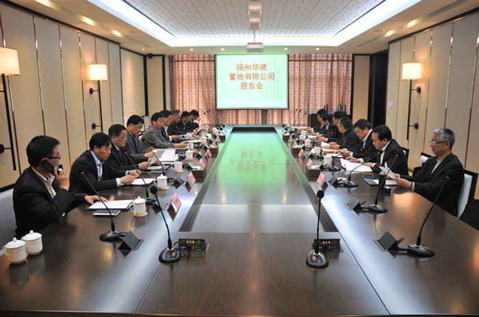 4月7日下午,揚州華建置地有限公司股東會2014年會在華建企業展示中心召開,華建地產董事長程杰主持會議,會議聽取并審議通過了徐剛所作的關于華建·雅筑項目經營情況的報告。
