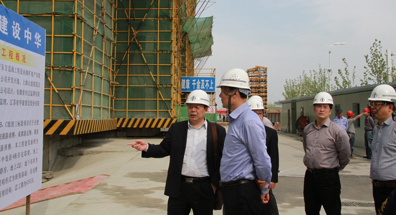 聞道才副市長赴安徽分公司視察東方藍海項目 時間:2014-04-11 3415 4月10日下午,揚州市副市長聞道才一行赴安徽分公司視察了合肥東方藍海B、C組團三標段項目。公司副總經理陸俊、副總經理、惠州公司總經理華恒榮陪同參加。 在項目現場華恒榮副總經理向來訪領導簡要介紹了江蘇華建在安徽市場的發展戰略及東方藍海B、C組團三標段項目的施工情況。聞市長對施工現場、施工組織非常滿意,并再三強調要抓好安全工作,爭創優質工程,為揚州建筑業在安徽市場的發展做出積極貢獻。