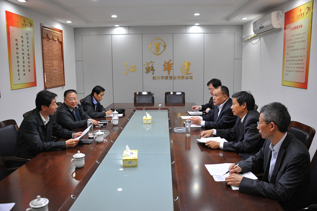 5月9日,公司董事長陸金龍一行到鹽城華建置業公司調研。公司領導程杰等陪同參加。