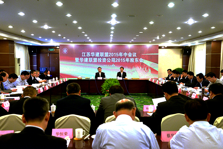 5月4日,在前一天華建聯(lián)盟投資公司董事會監(jiān)事會召開會議并通過了有關(guān)事項以后,華建聯(lián)盟在揚(yáng)州怡園飯店召開2015年中會議暨聯(lián)盟投資公司股東會,聯(lián)盟成員單位負(fù)責(zé)人(聯(lián)盟投資公司股東單位代表)、投資公司董事和監(jiān)事、高管等參加會議,華建公司高管、各區(qū)域公司及分支機(jī)構(gòu)和總部部門負(fù)責(zé)人等列席會議,宗有農(nóng)主持會議。