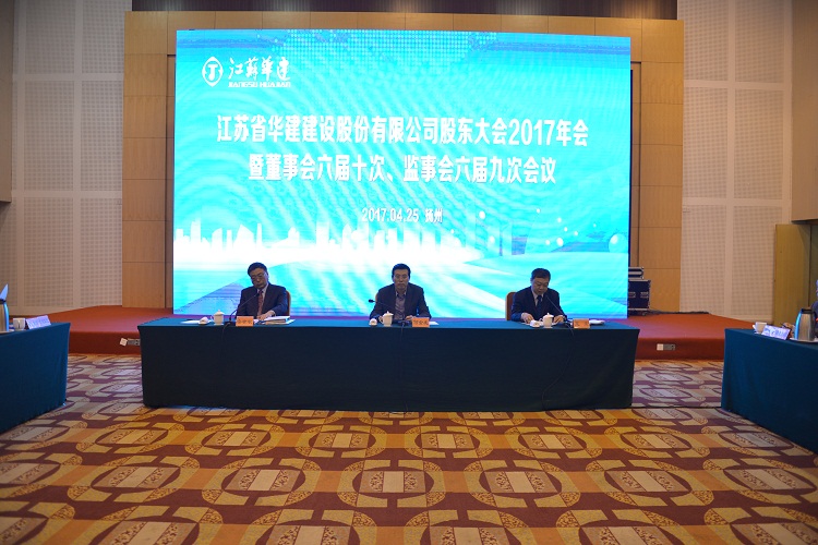 4月25日上午,江蘇華建股東大會(huì)2017年會(huì)在揚(yáng)州召開。各股東代表和公司董事、監(jiān)事出席會(huì)議,公司高級(jí)管理人員、各分支機(jī)構(gòu)和總部各部室負(fù)責(zé)人、律師團(tuán)律師列席會(huì)議,王宏董事長主持會(huì)議,揚(yáng)州市副市長何金發(fā)出席會(huì)議并致辭。