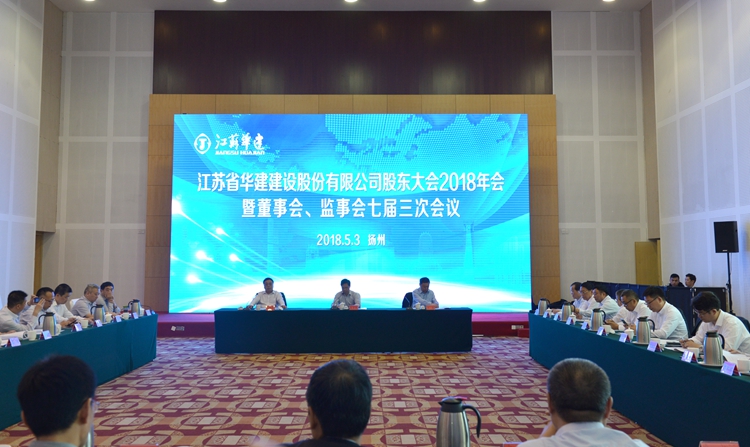 5月3日下午,江蘇華建股東大會(huì)2018年會(huì)暨董事會(huì)監(jiān)事會(huì)七屆三次會(huì)議在揚(yáng)州召開。公司股東單位代表和董事、監(jiān)事出席會(huì)議,公司高級(jí)管理人員、各分支機(jī)構(gòu)和總部各部室負(fù)責(zé)人、律師團(tuán)律師列席會(huì)議,王宏董事長主持會(huì)議,揚(yáng)州市政府副秘書長林寶榮出席會(huì)議并致辭。