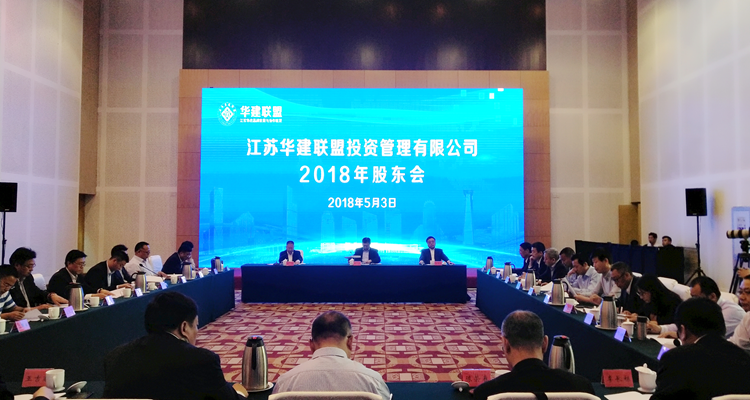 5月3日上午,江蘇華建聯盟投資管理公司2018年股東大會在揚州會議中心召開,股東代表、董事、監事、建工控股公司領導和聯盟投資公司經營層人員等參加會議,投資公司董事長程杰主持會議。