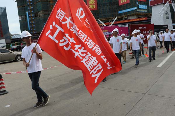 江蘇華建積極響應海口市“雙創”活動 時間:2015-09-01 2923 8月29日上午,海口市龍華區“雙創”啟動大會在我公司承建的恒大外灘中心項目現場召開,龍華區區委書記王東等領導出席啟動儀式,公司副總、海南分公司總經理王宏到會并做表態發言。 隨后,會場舉辦“我愛海口,力爭雙創”授旗儀式,并組織志愿者“自掃門前雪”,手拿掃把、簸箕等工具,將所屬衛生轄區打掃得干干凈凈,以實際行動來踐行“雙創”工作。
