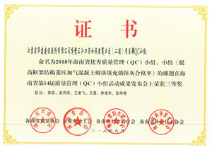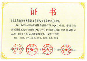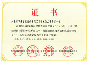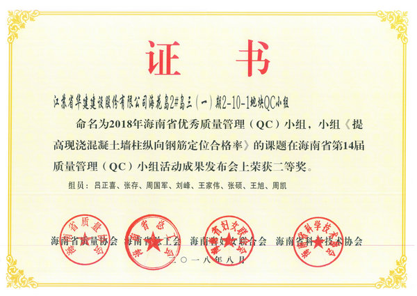 日前,海南省質(zhì)量協(xié)會(huì)公布了2018年海南省“優(yōu)秀質(zhì)量管理(QC)小組”活動(dòng)成果評(píng)比結(jié)果,海南分公司共有5項(xiàng)成果受到表彰。其中,海花島2#島三()2-10-1地塊QC小組榮獲二等獎(jiǎng),博鰲三江口濱水旅游商業(yè)區(qū)(二期)項(xiàng)目部QC小組、三亞婦幼保健院整體搬遷(新址)建設(shè)項(xiàng)目QC小組、恒大海上帝景QC小組、華盛中央公園國(guó)際公寓QC小組榮獲三等獎(jiǎng)。