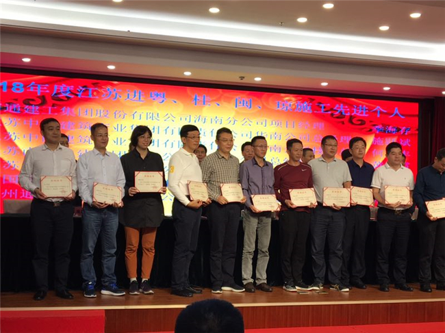 海南公司喜獲江蘇出省施工多項榮譽 時間:2019-03-24 3346 3月22日,江蘇省住建廳南方辦在南寧召開2019年江蘇建筑業南方區工作會議。會上,江蘇華建海南分公司、湖北分公司被江蘇省住建廳表彰為2018年度出省施工先進集體;高家馴、杜宇、吳潤年、劉遠被表彰為2018年度出省建筑施工先進個人;喬繼承、湯小慶、陳超分別被江蘇省政府駐深辦表彰為2018年度江蘇進粵、桂、閩、瓊經營財務、新聞報道、施工質量先進個人。 會上江蘇華建深圳分公司、珠海分公司、惠州分公司等兄弟單位同時被表彰為先進集體,另有一批先進個人分別受到表彰。(辦公室)