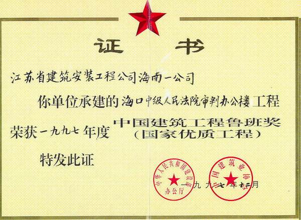 ??谑兄屑壢嗣穹ㄔ簩徟修k公樓位于??谑薪鹩盥?號,1995年4月竣工,1996年6月被評為海南省優質工程,并榮獲海南省優秀建筑二等獎,1997年12月榮獲魯班獎。