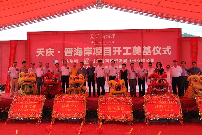 812日上午,由天慶集團、甘肅晉商投資發展股份有限公司共同開發的、江蘇華建珠海區域公司承建的天慶·晉海岸項目舉行隆重的奠基儀式。天慶集團董事長韓慶、甘肅晉商投資發展股份有限公司股東代表和金灣區常務副區長管偉、三灶鎮有關領導、珠海商界代表以及相關媒體等近300人參加奠基儀式。