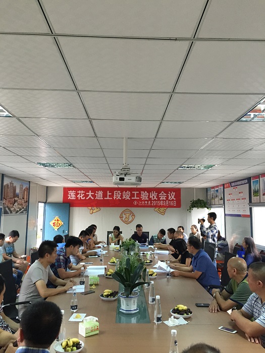 916日下午,廣安項目蓮花大道上段竣工驗收會在項目現場會議室舉行。廣安區委常委李榮盛、廣安區住建局副局長周春蘭,財政局、質監站相關領導和廣安項目指揮部各職能部門相關同志等出席驗收會。