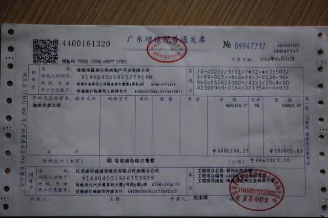 珠海區域公司第一張增值稅發票成功開具 時間:2016-06-01 3037 建筑行業“營改增”自5月1日起正式實施,公司領導高度重視“營改增”工作,先后完成了稅控設備軟硬件更新、數次的“營改增”知識培訓及交流會,并在主管國稅局完成了有關一般納稅人認定、增值稅發票額度調整、公司老項目備案等工作。 5月31日,財務處成功開具了第一張增值稅普通發票,此票為公司第五項目部承擔施工任務的晉和天慶花園總承包工程使用,走出了公司“營改增”工作的堅實一步。