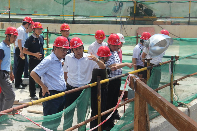 622日上午,調研組一行抵達珠海,隨即到珠海晉和天慶花園和橫琴華策國際大廈項目部視察指導。在華策國際大廈項目部,調研組一行與項目建設方就項目建設推進事宜進行了簡短座談,宗總和程總針對華策國際大廈結構復雜、施工難度大的特點,表示江蘇華建會在尊重客觀規律、確保質量和安全的前提下,充分重視建設方的意見和建議,通過雙方的共同努力打造出一項精品工程。