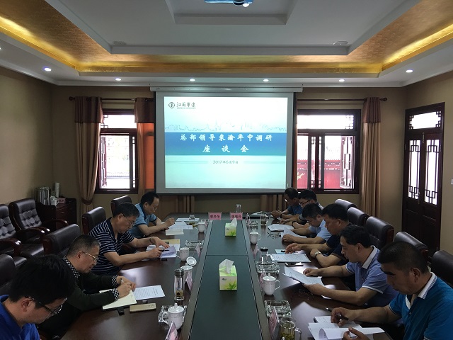 隨后,宗總一行組織召開重慶分公司調研座談會。重慶分公司總經理嚴正濤簡要匯報了公司上半年的工作開展情況及下一步工作計劃,職能部門就各自工作進行了匯報發言。常務副總程杰分別從抓項目質量和安全文明施工、抓項目進度、抓項目合規手續、加強業務學習、加強項目風險控制、加強與當地政府溝通等方面提出了具體要求。