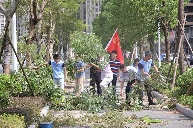 8月23日,珠海遭遇了53年來最強臺風“天鴿”,全市受災嚴重。臺風過后,珠海公司第一時間迅速組織復產自救工作,并主動聯系珠海有關部門,迅速組織志愿者及重型工程車輛投入到社會道路的清理中去。在這場抗風救災的戰斗中,珠海公司共疏通社區道路5條、市政道路3 條,清走倒伏大樹200余棵,運送災后垃圾 20車次。《揚州日報》A3版顯著位置對公司抗風救災活動進行了報道,點評江蘇華建珠海公司“眾志成城,生產自救,展現了揚州建筑大軍的良好形象”。