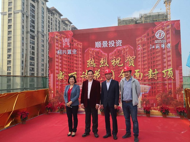 陽江威麗詩花園2期項目全面提前封頂 時間:2019-01-15 2664 2019年1月14日,第一項目部承擔施工任務的陽江威麗詩花園2期項目提前60天實現主體結構全面封頂。珠海利騰集團董事長黃金紅、總經理譚劍云,江蘇華建珠海區域公司總經理呂方達等參加封頂儀式。 威麗詩花園2期8~10棟住宅及地下室、12~15棟住宅及地下室、16棟住宅及地下室(含商業裙樓)、17~18棟住宅及地下室、19棟住宅及地下室(含商業裙樓)土建及水電安裝工程。該工程含商住樓共11棟,其中地下室建筑面積約34378平方米、地上建筑面積約127468平方米,總建筑面積約161847平方米。
