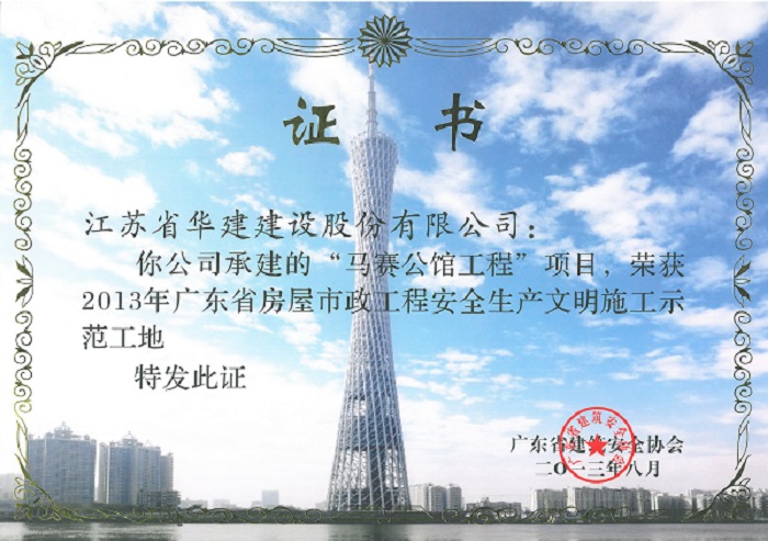 2013年馬賽公館工程廣東省房屋市政工程安全生產(chǎn)文明施工示范...