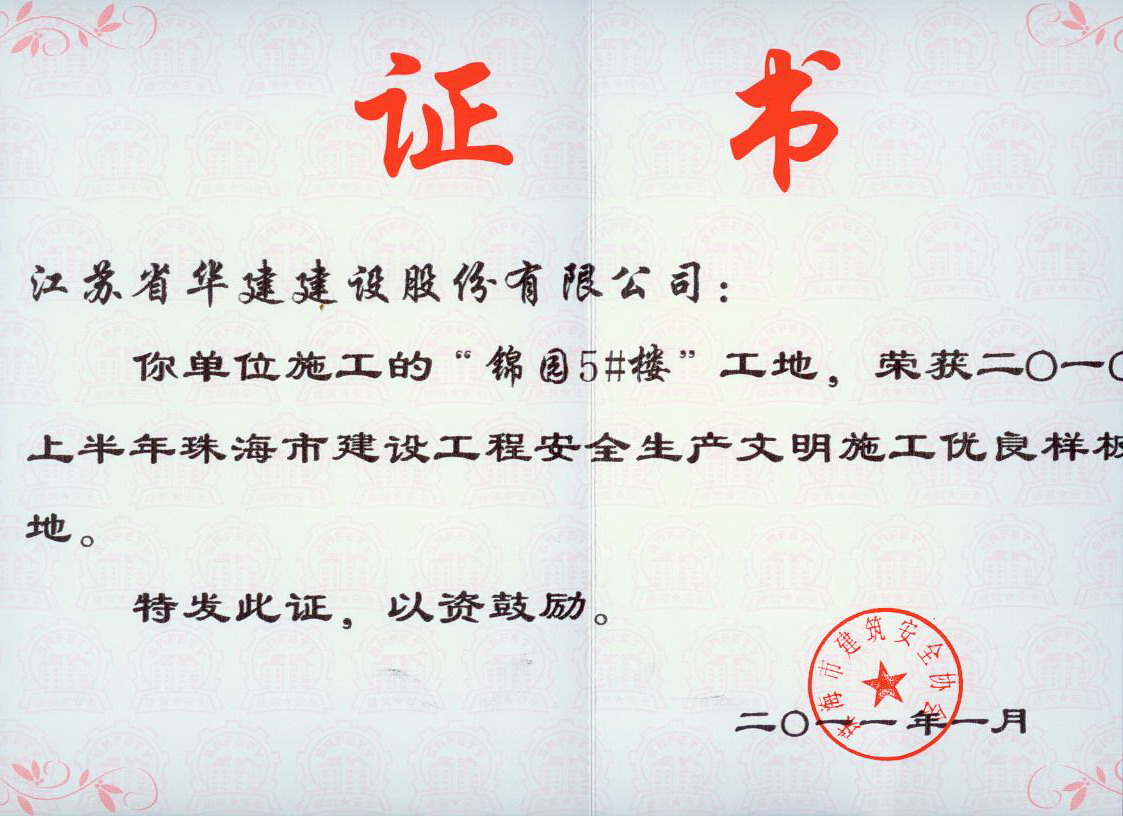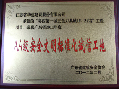 AAA級安全文明標準化工地,是由中國建筑業協會建筑安全與機械分會(原建筑安全分會)實施評選的獎項,是安全文明施工方面的最高獎項。 截止2020年末,江蘇華建共計10項工程入選此獎項。