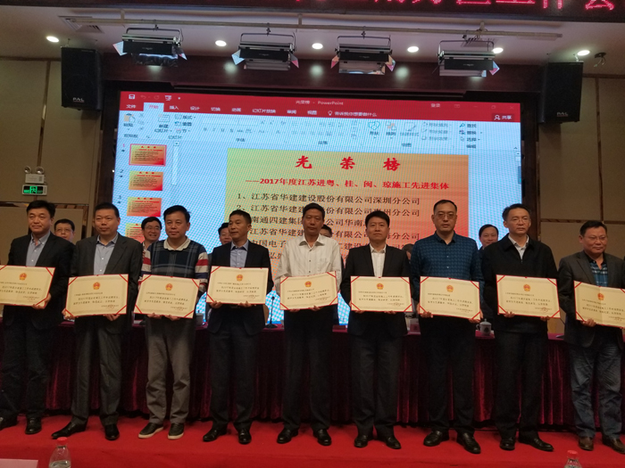 惠州公司獲評“2017年度江蘇出省施工先進集體” 時間:2018-03-26 3448 3月24日,2018年度江蘇建筑業南方區工作會議在深圳召開,會議表彰了一批江蘇出省施工先進集體及先進個人?;葜莨颈唤K省住房和城鄉建設廳評為“2017年度江蘇出省施工先進集體”,總經理周群利、技術處主任陳申高被江蘇省住房和城鄉建設廳評為“2017年度江蘇出省施工先進個人”;史泰龍、孔祥明、王興東分別被江蘇省人民政府駐深圳(廣州)辦事處表彰為2017年度江蘇進粵、桂、閩、瓊施工質量安全、經營財務和新聞報道先進個人。