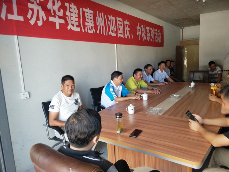 喜迎國慶、中秋,促進交流、互動 時間:2017-10-06 2787 10月3日,惠州公司機關全體在惠人員在總經理周群利的帶領下,前往公司直管項目部對節日堅守崗位的人員進行了慰問,并與他們進行了拓展、益智等互動活動。活動期間,周總與項目部人員進行了座談,并代表公司對節日堅守崗位的人員表示親切的慰問,詳細了解他們節日的工作、生活安排情況。同時要求項目部負責人要合理安排好大家的工作和生活,讓他們過一個喜慶、祥和的節日。會后,公司機關全體人員與項目部在崗人員開展了羽毛球、拔河、摜蛋、象棋等拓展、益智活動。通過這次活動,加強了交流,增加了了解,提升了凝聚力。