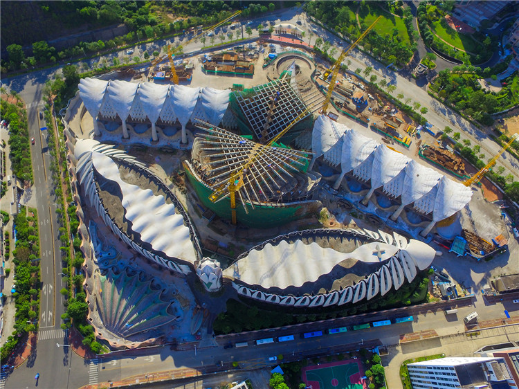 深圳瑪絲菲爾工業廠區工程總建筑面積約11m2,工程主體為鋼與鋼筋混凝土組合異型結構,外部及屋頂由對稱布置的56個雙曲面混凝土葉片結構圍護,建筑外表面采用碎拼面磚、磚片、石塊作為裝飾,為國內目前面積最大的仿生藝術建筑。工程中雙曲葉面、背葉面、旋轉坡道、異形柱等鋼結構造型復雜,鋼結構構件加工制作尺寸控制難度大、精度高。項目部與設計院聯合攻關,在該項目迄今為止已獲得8項發明專利,24項實用新型專利,創國家級工法1項、省級工法6項。兩次迎接國內同行的大規模學習觀摩。