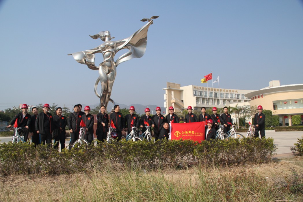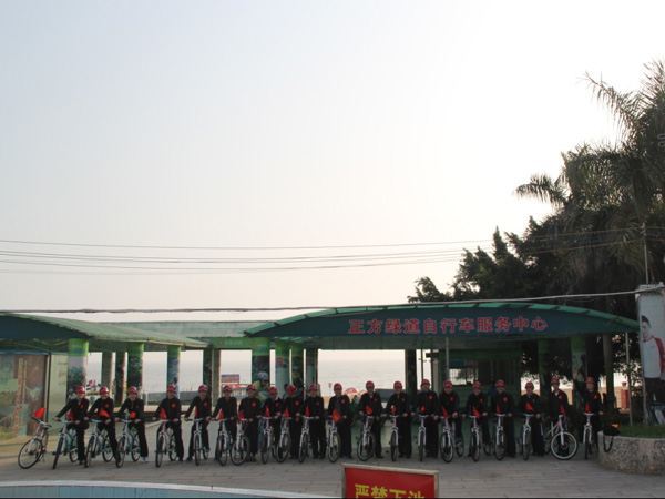 2012年1月1日上午9時,珠海區(qū)域公司全體員工在公司經(jīng)理室的帶領下,統(tǒng)一著裝,頭戴印有江蘇華建標識的安全頭盔,騎著統(tǒng)一插有江蘇華建小紅旗的自行車,沿著珠海海濱綠道開展騎自行車迎新年活動。騎行的起點是珠海海濱浴場,終點是珠海淇澳島,來回全程56公里。騎行過程中,隊伍有序安全行進,引導車上醒目的江蘇華建大旗迎風招展,每輛自行車前面的江蘇華建小紅旗也分外引人注目。繆國樞總經(jīng)理身先士卒,騎行在隊伍的最前面,無論是年近6旬的老員工,還是剛工作不久的新員工,個個爭先恐后,奮勇向前,江蘇華建這支特殊的“騎兵隊”在新年的第一天飛行在珠海的海濱綠道上,形成了一道亮麗的風景線,引得許多路人和游客紛紛駐足觀望,許多攝影愛好者也紛紛舉起手中的相機爭相拍照。 這次元旦騎自行車活動既是一次低碳環(huán)保生活的宣傳,也是一次江蘇華建員工良好精神風貌的展現(xiàn),通過這次活動既鍛煉了員工的體魄,更激發(fā)了員工們新的一年里奮發(fā)向上,團結拼搏,奔向新未來的昂揚斗志。