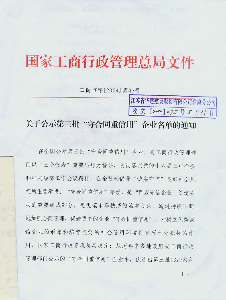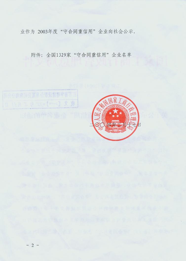 2004年國家級守合同重信用企業(yè)